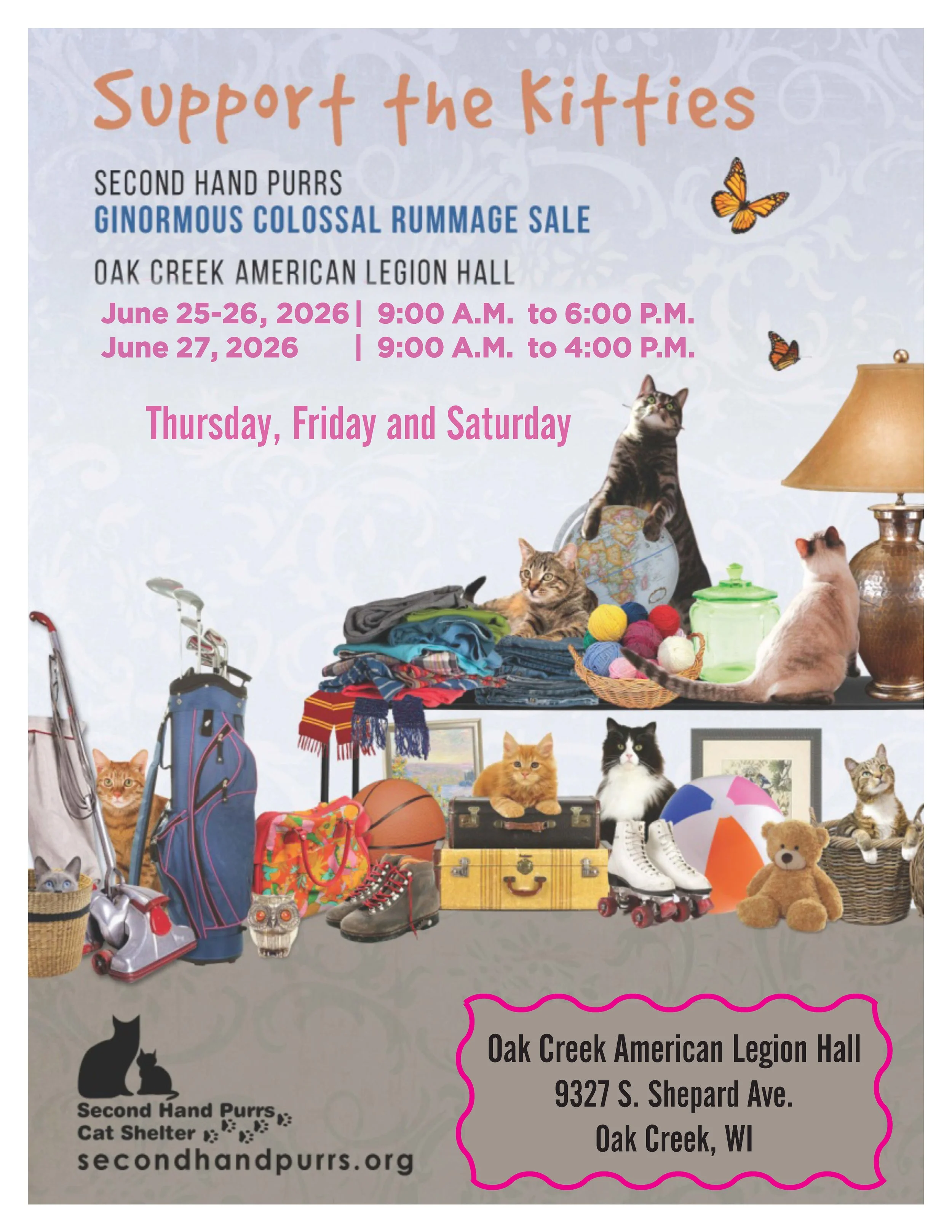 Inside and air conditioned at the American Legion Post in Oak Creek. Items A to Z!